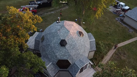 This was a one-day project in which we installed new shingles on a non-ventilated geodesic dome roof as well as a garage a garage totaling around 3,500 sqft.